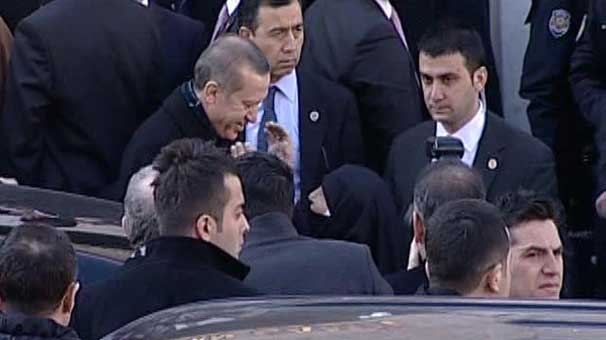 BAŞBAKAN Recep Tayyip Erdoğan Cuma namazını Başakşehir’deki Tunahan Camisi’nde kıldı. Cami çıkışında, " Başakşehir seninle gurur duyuyor" sloganlarıyla karşılaşan Erdoğan vatandaşlara el sallladı. Bir bebeği seven Erdoğan’ın yanına sokulmayı başaran 76 yaşındaki Bayburtlu Güzel Aydın, uzun süre ellerini Erdoğan’a sürerek birşeyler söyledi. Başbakan’ın gülerek tepki verdiği Aydın’ın Erdoğan’a şifa duası yaptığı ortaya çıktı.