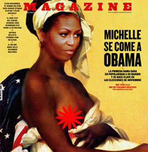 İspanya'da yayınlanan Magazine de Fuera de Serie dergisinin son kapağı ırkçılık tartışmalarını başlattı. Tartışmaya neden olan kapakta, Michelle Obama'nın başı photoshop ile Marie-Guillemine Benoist'in Portrait D'Une Négresse adlı tablosundaki köle kadının vücuduna yerleştirildi. Bu tablo, köleliğin kaldırılmasının yıldönümü nedeniyle 1800 yılında Louvre Müzesi'nde sergilenmişti.