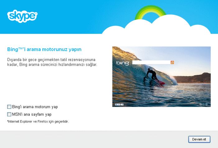 Tarayıcınızın ana sayfasının ve varsayılan arama motorunun değişmemesi için iki kutucuğun da işeretini kaldırın ve "Devam et" tuşuna tıklayın.