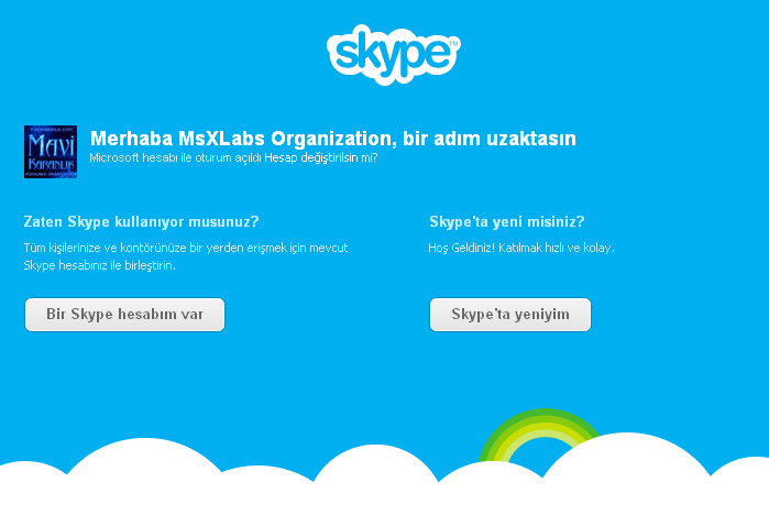 Daha önce Skype kullandıysanız ve mevcut bir hesabınız varsa "Bir Skype hesabım var" seçeneğine, yoksa "Skype'ta yeniyim" seçeneğine tıklayın.