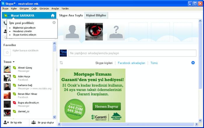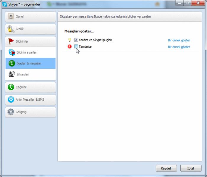 Kişi listesinin altında bulunan reklamı kaldırmak için Skype'ta "Seçenekler > Araçlar > Bildirimler > İkazlar & mesajlar" ekranına gelin ve "Tanıtımlar" seçeneğinin işaretini kaldırın ve sağ alttaki "Kaydet" tuşuna tıklayın.