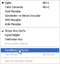 Skype ana ekranında bulunan "Görünüm" menüsü altından "Daraltılmış Görünüm"ü seçin.
