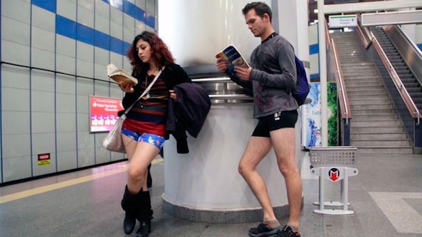 New York'da 2001 yılında kurulan "Improv Everywhere" adlı grup tarafından başlatılan "Metroda pantolonsuz gün" eylemi bu yıl 11. kez yapıldı.