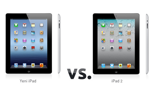 Yeni iPad, iPad 2‘ye göre daha kalın ve daha ağır olarak geldi.Aynı zamanda 4 çekidekli grafik işlemcisini kullanan Yeni iPad, iPad 2′ye göre 4 kat daha fazla grafik performansı sunuyor.